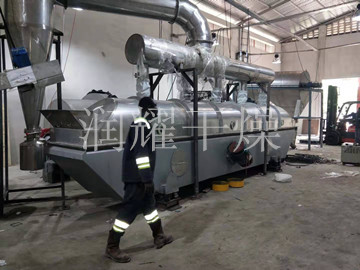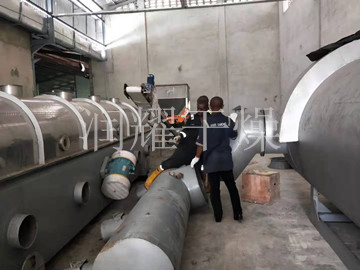 工人在國(guó)外調(diào)試振動(dòng)流化床現(xiàn)場(chǎng)
